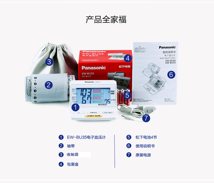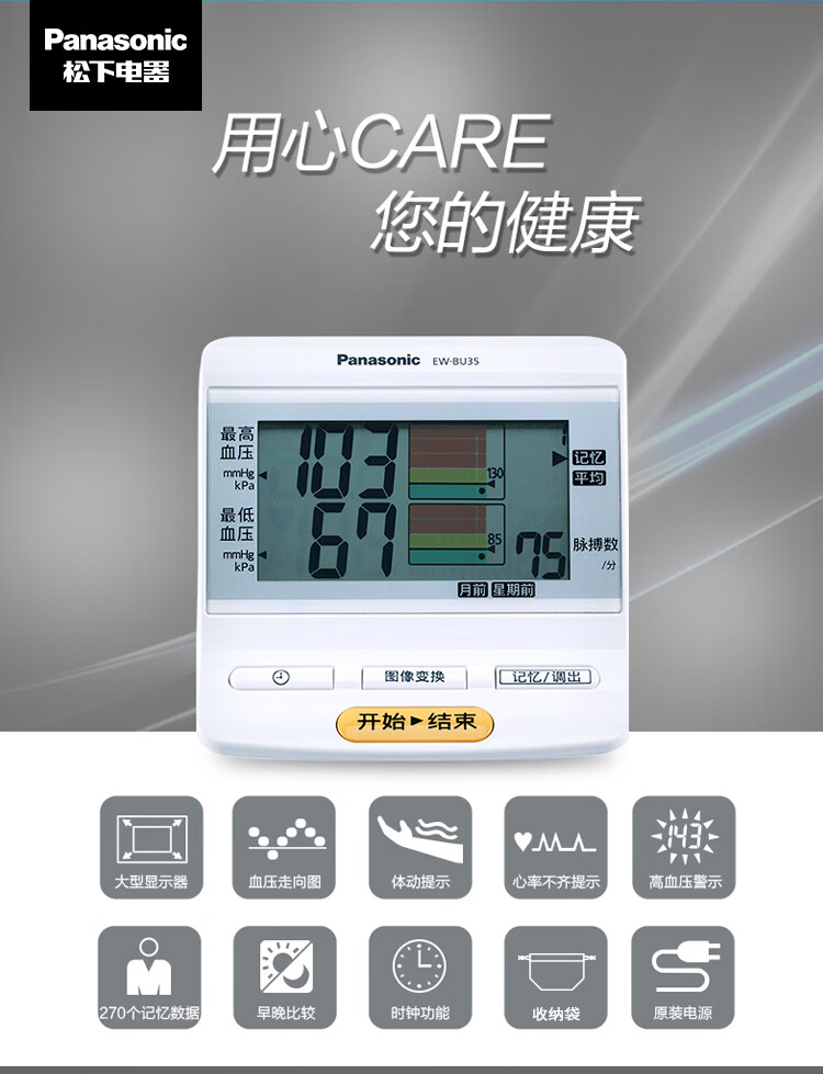 松下(Panasonic) 上臂式電子血壓計(jì) 智能血壓測(cè)量?jī)x EW-BU35